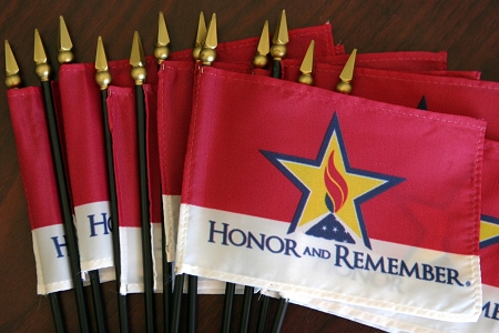 Black Staff with Gold Spear, Nylon Honor and Remember flag.