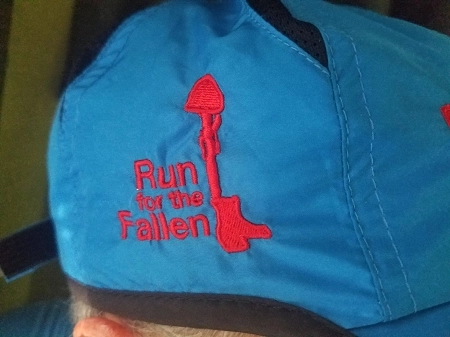 Beautiful and durable official runner's hat from Run for the Fallen. Made of dry fit material and one size fits all with adjustable Velcro strap. Embroidered with Honor and Remember logo on front and Run for the Fallen logo on the side in red.